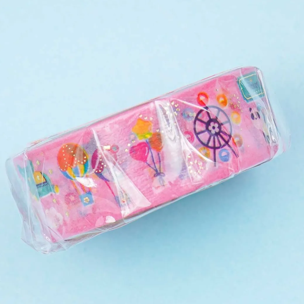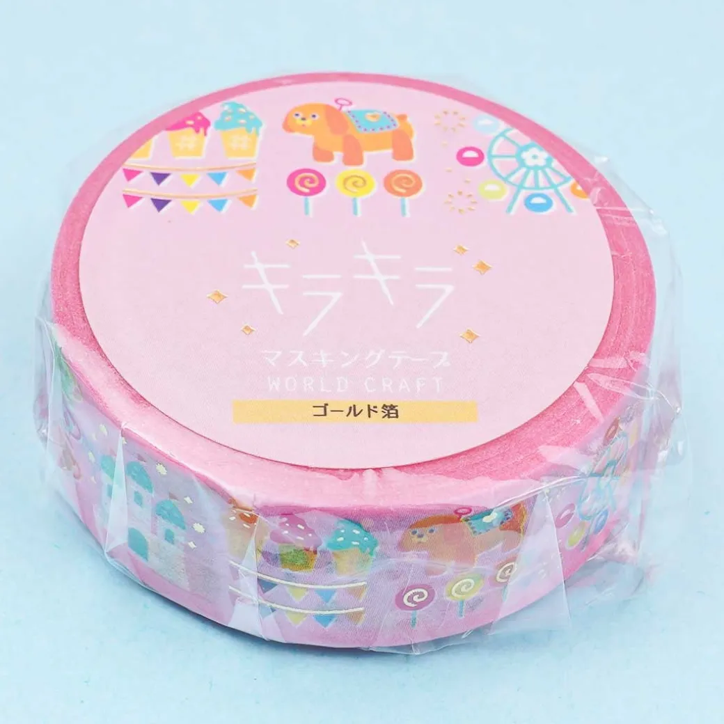 - A kawaii roll of masking tape illustrated with retro prints of theme park objects