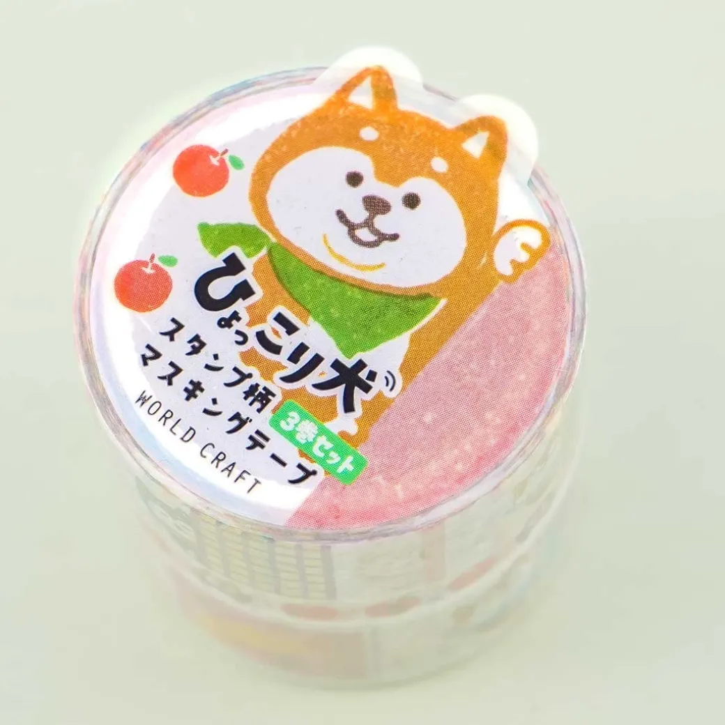 - A set of washi tapes featuring prints of cute Shiba Inu dogs peeping out from behind a wall