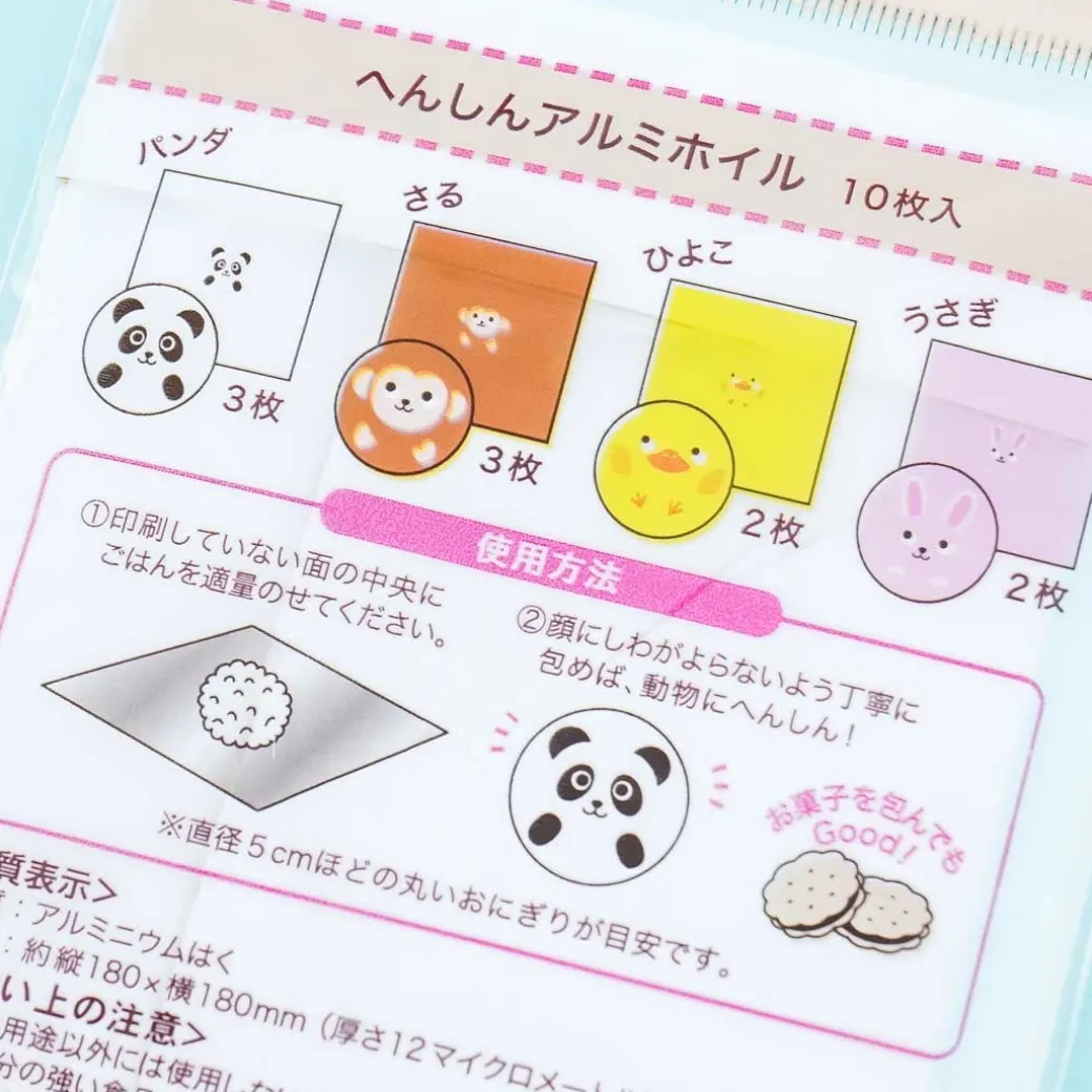 - A set of kawaii aluminum foil wrappers with prints of cute zoo animals